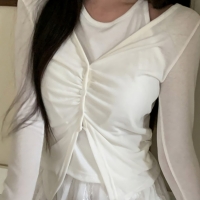 여성 단가라 홀터넥 레이어드 소매 버튼 티셔츠
