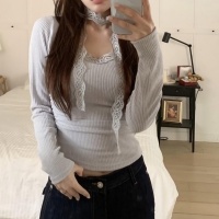여성 레이스 스카프 세트 셔링 골지 티셔츠