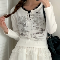 여성 레터링 패턴 레이어드 아일렛 티셔츠