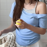 여성 여름 단가라 끈나시 레이어드 반팔티