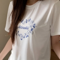 여성 레터링 프린팅 스판 반팔 티셔츠