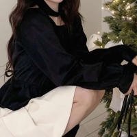 여성 겨울 페미닌 프릴 벨벳 블라우스