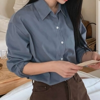 여성 가을 겨울 데일리 새틴 버건디 블라우스