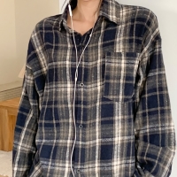 여성 원 포켓 도톰 루즈핏 체크 셔츠