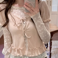 여성 봄 프릴 도트 끈나시 가디건 세트