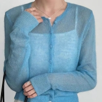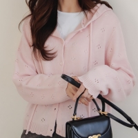 여성 봄 슬림핏 유넥 펀칭 가디건