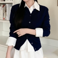 여성 봄 데일리 퍼프 소매 카라 니트 가디건