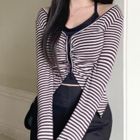 여성 봄 브이넥 슬림 나시 가디건 세트