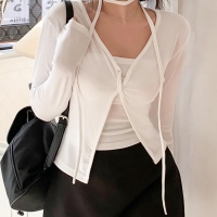 여성 초커 레이어드 슬림 나시 가디건 세트