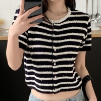 여성 봄 스카시 펀칭 반팔 니트 가디건
