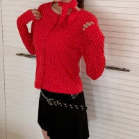 여성 슬림핏 도트 라운드 세미크롭 가디건