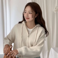 여성 캐시미어 크롭 니트 후드 집업