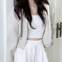 여성 봄 데일리 베이직 코튼 크롭 후드 집업