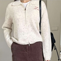 여성 레터링 자수 콕콕 카라 니트 집업