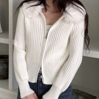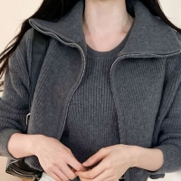 여성 봄 데일리 퍼 카라 골지 니트 집업