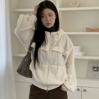여성 오버핏 기모 리본 트랙 후드 집업