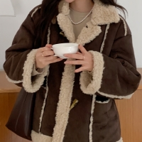 여성 스웨이드 양털 무스탕 집업 자켓