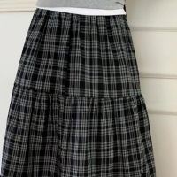 여성 체크 캉캉 밴딩 플레어 롱스커트