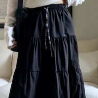 여성 봄 밴딩 티어드 캉캉 롱스커트