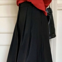 여성 사이드 버클 핀턱 플리츠 롱 스커트