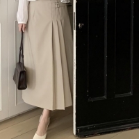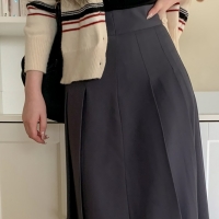 여성 봄 플리츠 핀턱 스판 롱 스커트
