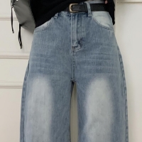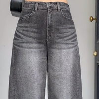 여성 데일리 와이드 워싱 데님 코튼 팬츠