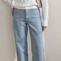 여성 일자 세미 와이드 워싱 데님 팬츠