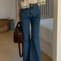 여성 프리미엄 워싱 포켓 일자 데님 팬츠