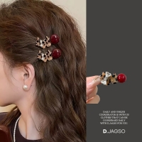 여성 핫 리본 호피 패턴 데일리무드 헤어 집게삔