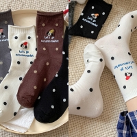 여성 도트 물방울 퍼피 강아지 중목 양말