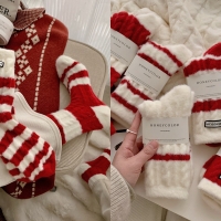여성 겨울 크리스마스 줄무늬 레드 울 양말
