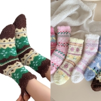 여성 겨울 눈꽃 울 배색 빈티지 양말