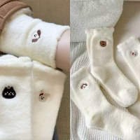 여성 겨울 뽀글이 동물 캐릭터 기모 미들 양말