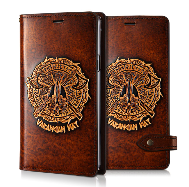 아이폰12미니 바이킹투구 가죽 다이어리 지갑 케이스
