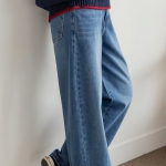 여성 프리미엄 워싱 포켓 일자 데님 팬츠