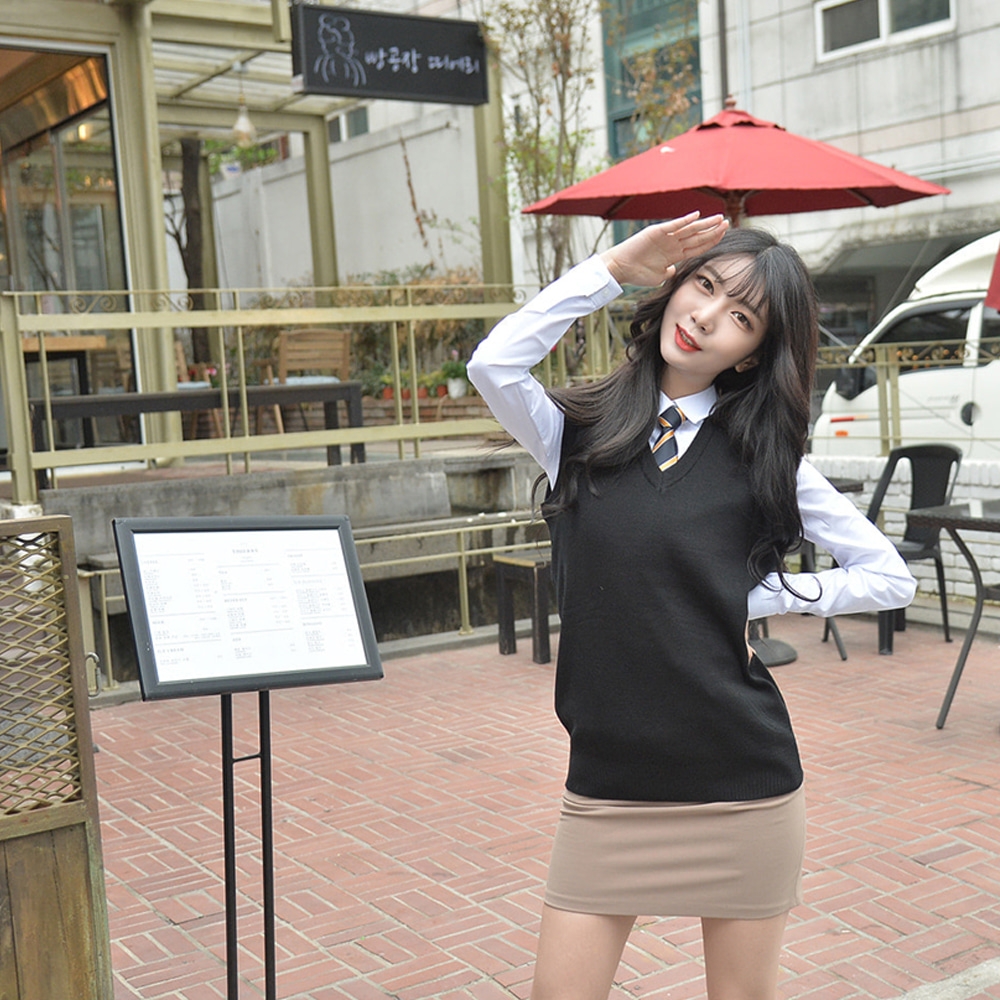 교복몰 보풀방지 블랙 롱조끼(여자) 교복 학생복