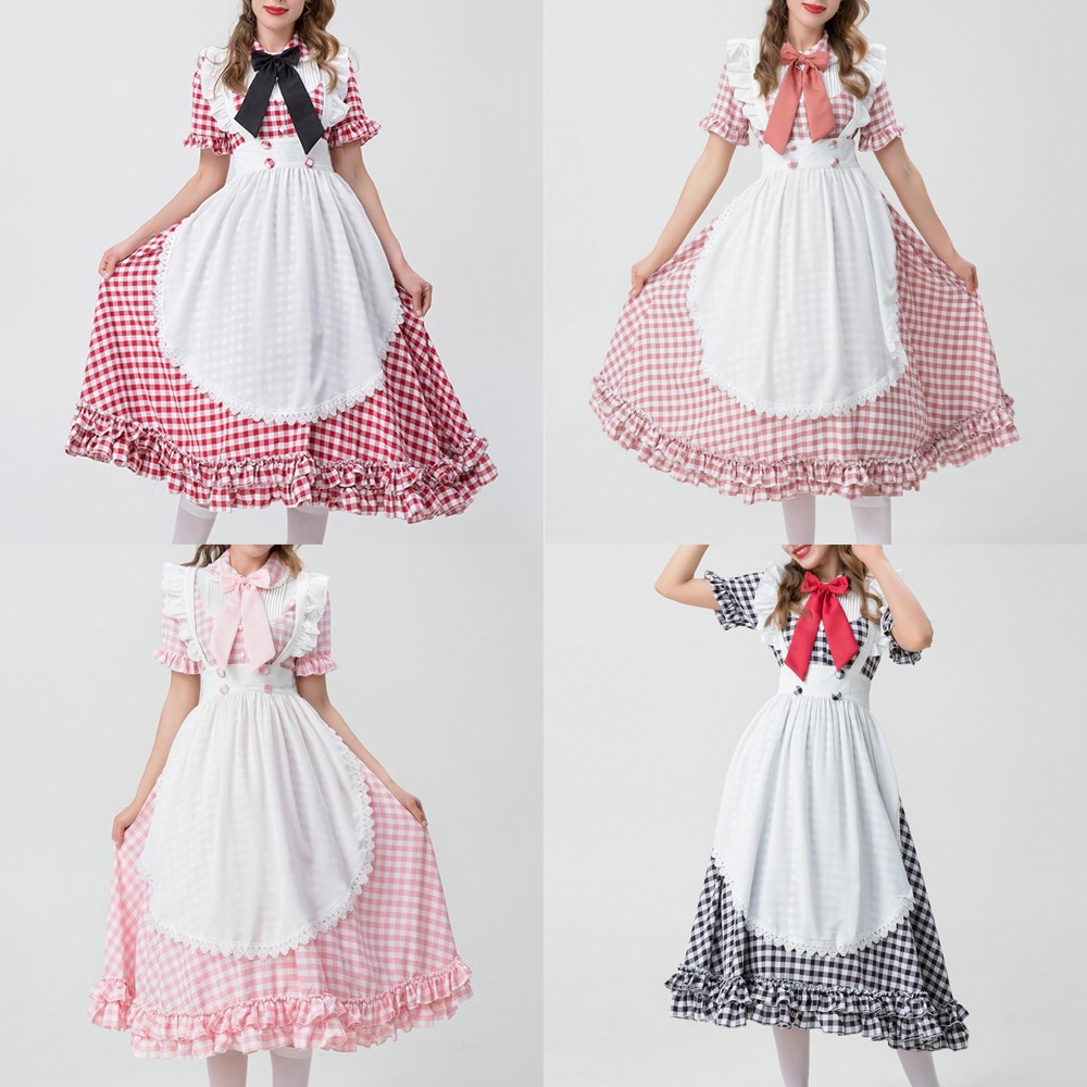 교복몰 체크 반팔 메이드복 코스프레 의상 세트