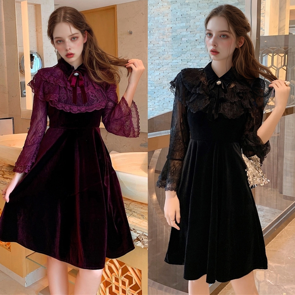프라이데이 벨벳 시스루 원피스(2color) 경성의상