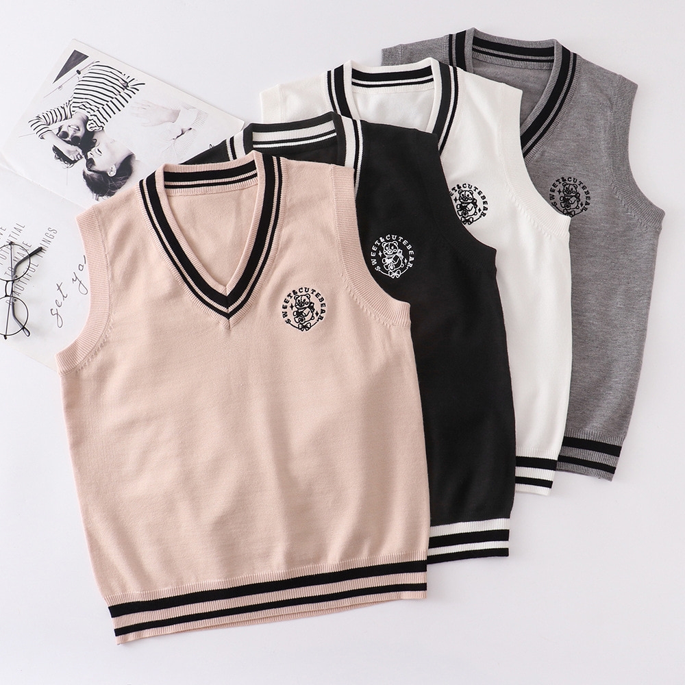 남녀공용 더블라운 큐티베어 자수 브이넥 니트조끼