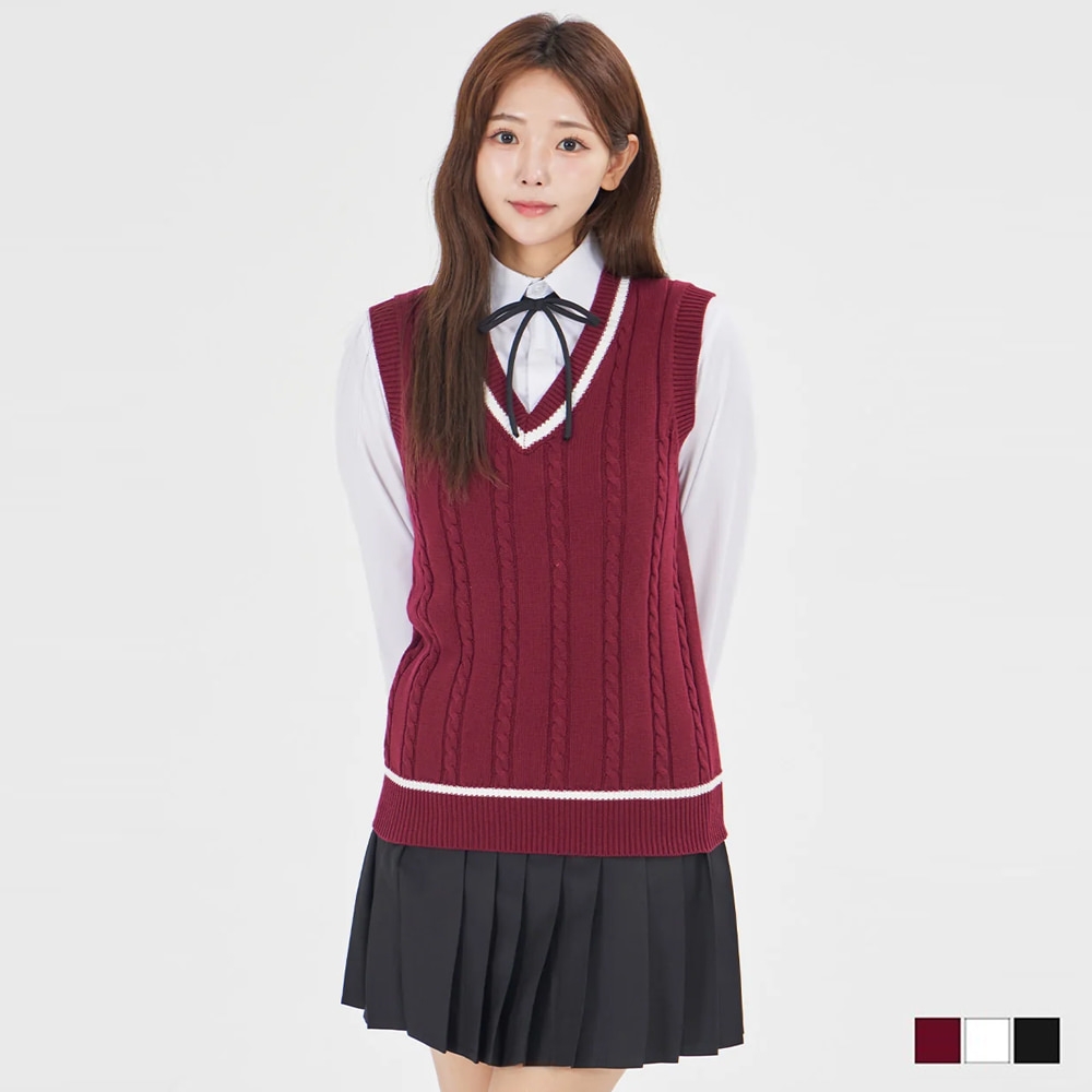 남녀공용 브이넥 꽈배기 니트 조끼(3color) 교복 학생