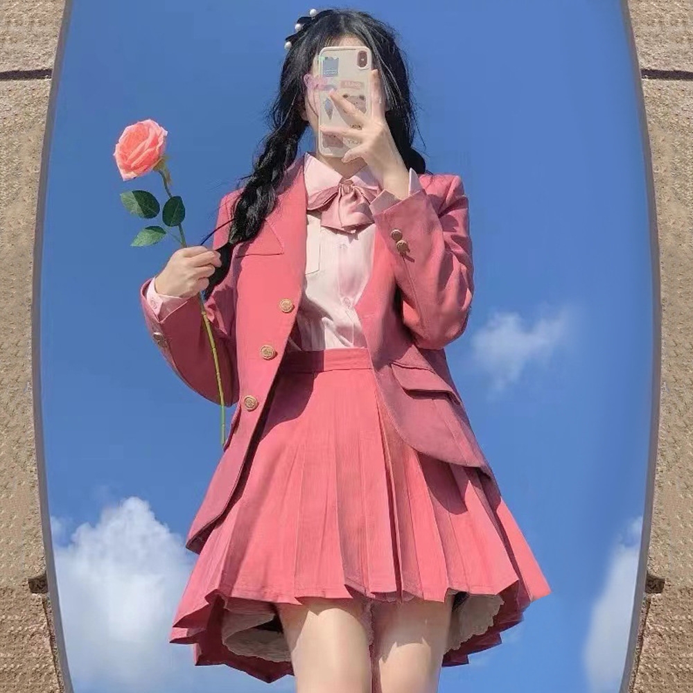3버튼 라즈베리 핑크 여자 교복자켓 교복 학생복