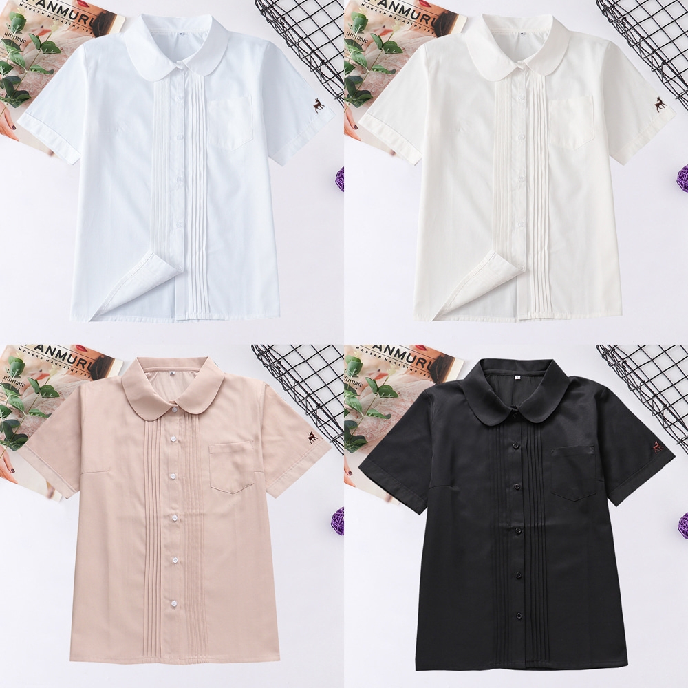 아코디언 라운드카라 반팔 교복셔츠(4color) 교복