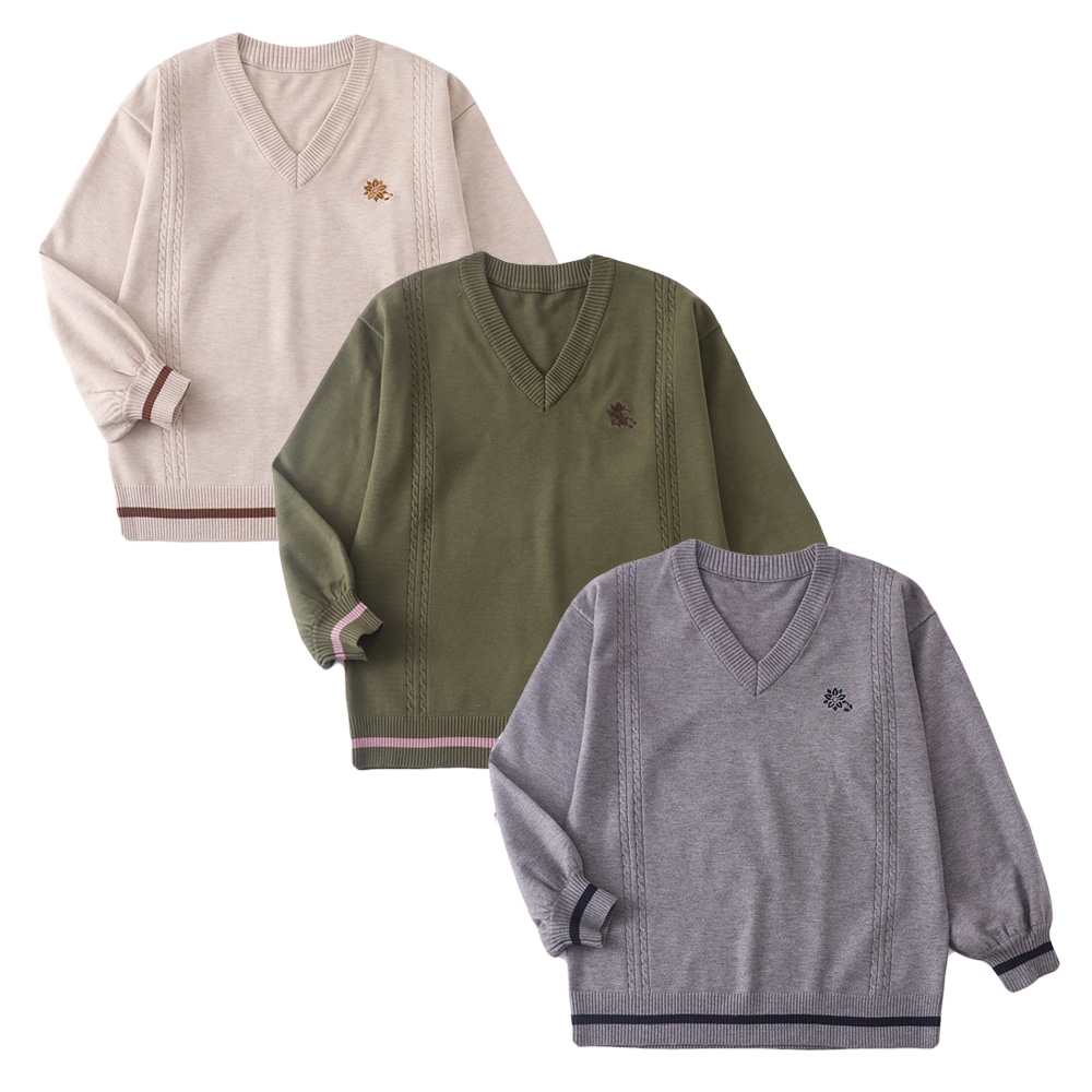 (대여) 남녀공용 브이넥 플라워자수 긴팔 니트 스웨터