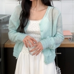 여성 봄 스카시 펀칭 반팔 니트 가디건