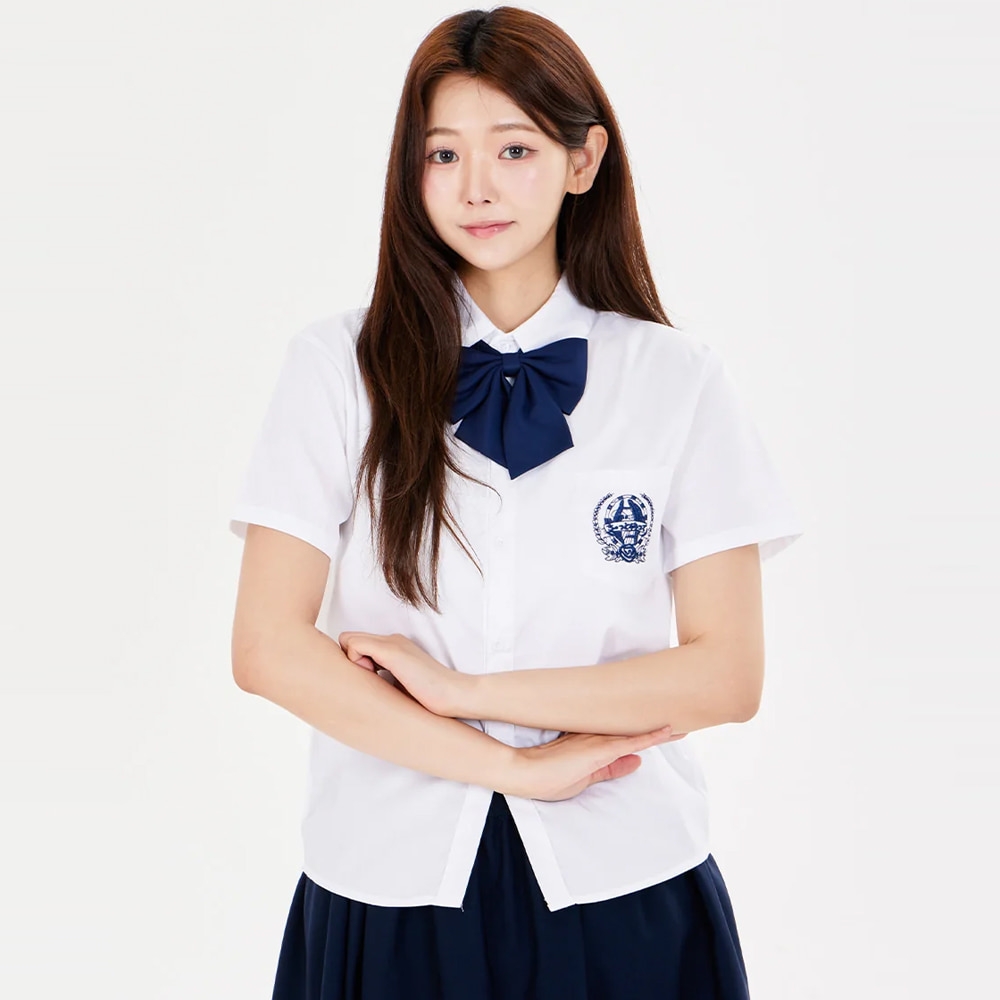 화이트 일본스타일 네이비자수 베이직 반팔 교복셔츠