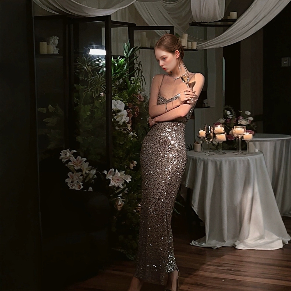 H라인 실버 스팽글 파티 드레스 교복 학생복