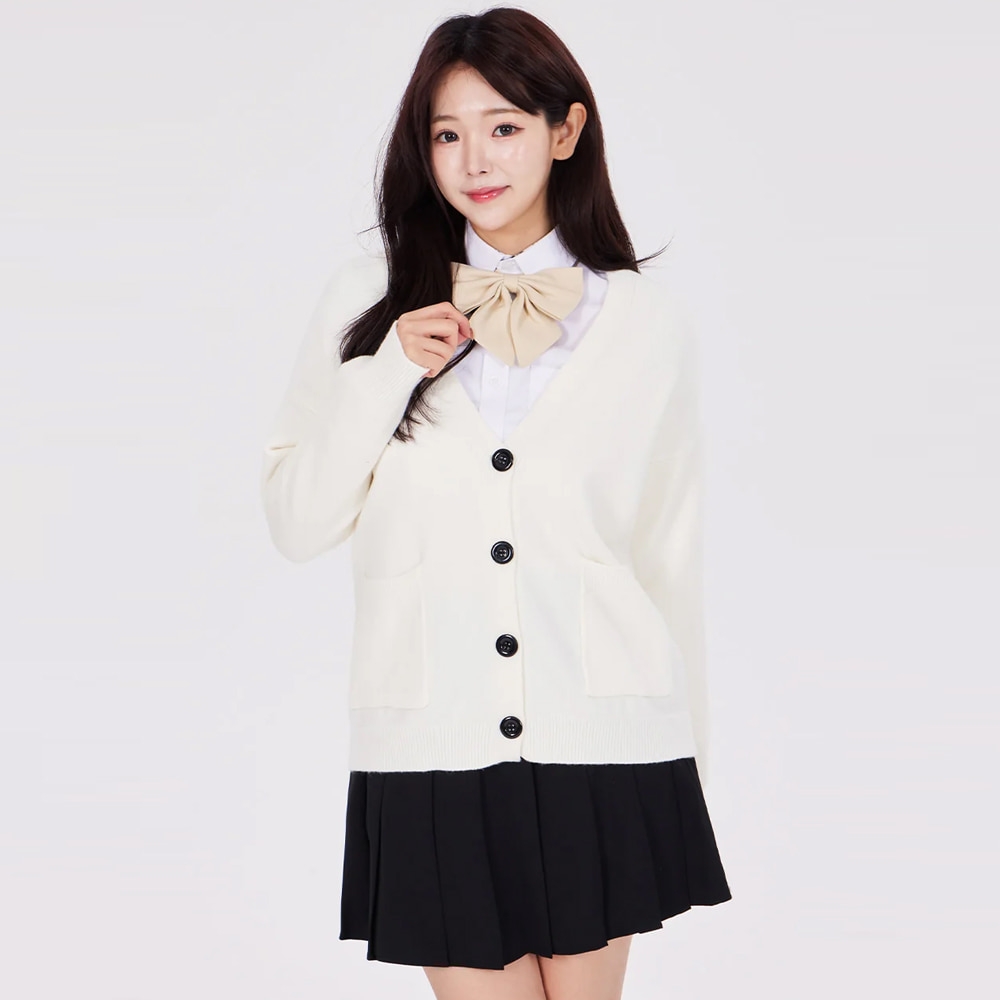 (대여) 스위트 아이보리 블랙 단추 여자 가디건 교복
