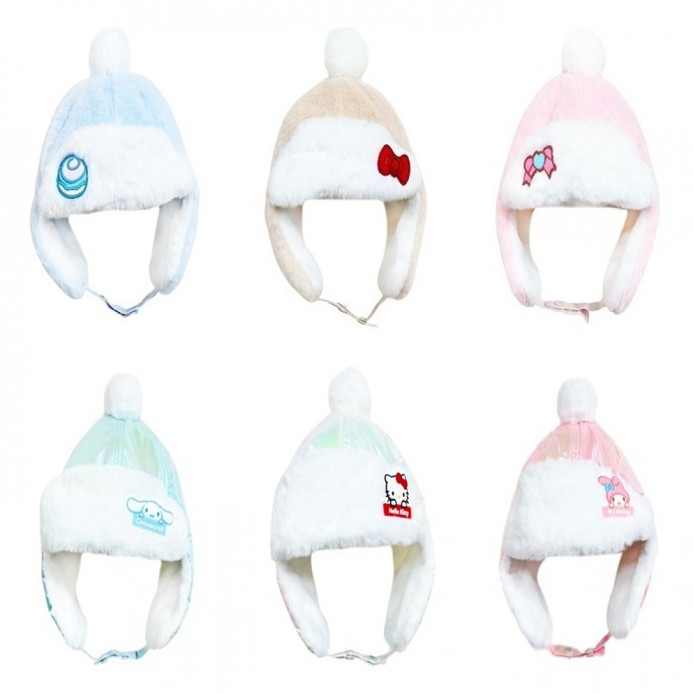 산리오 캐릭터 파스텔 퍼 샤인 공군모 겨울 모자
