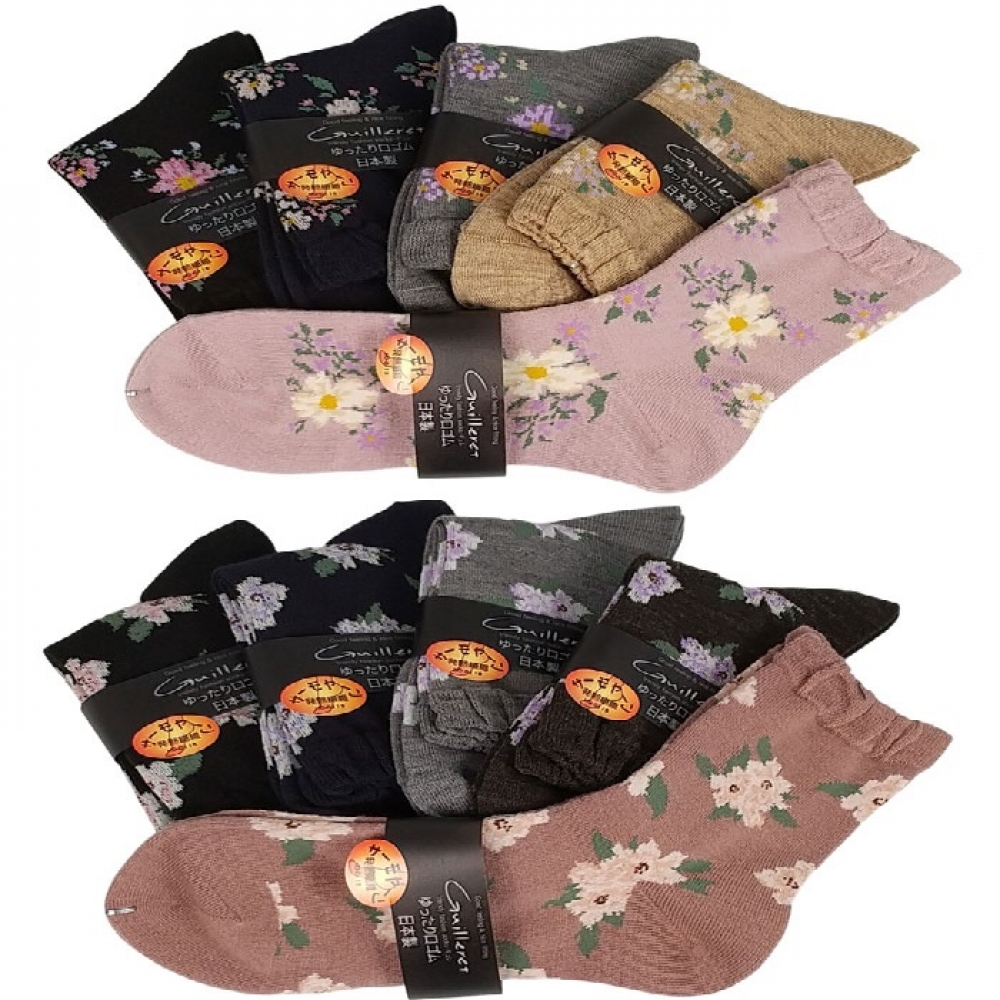 넉넉한 입구 고무 사양. 발을 조이지 않는 부드러운 양말입니다.