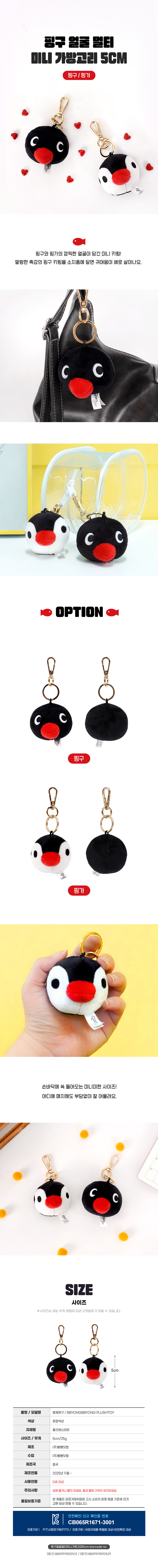 품명 및 모델명 핑구 얼굴 멀티 미니 가방고리 5cm-핑가